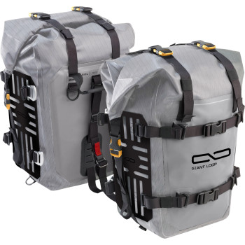 Slim, rugged, dry bag-inspired panniers for overnight or multi-day trips. The Giant Loop MotoTrekk Panniers feature an RF-welded waterproof fabric and roll-top closure. Its integrated mounting system fits virtually any motorcycle side luggage racks. Other features include lash loops for expanded storage capacity and quick-connect magnetic buckles for easy mounting and removal. The MotoTrekk Panniers are perfect for all of your on and off road adventures.