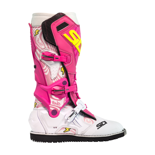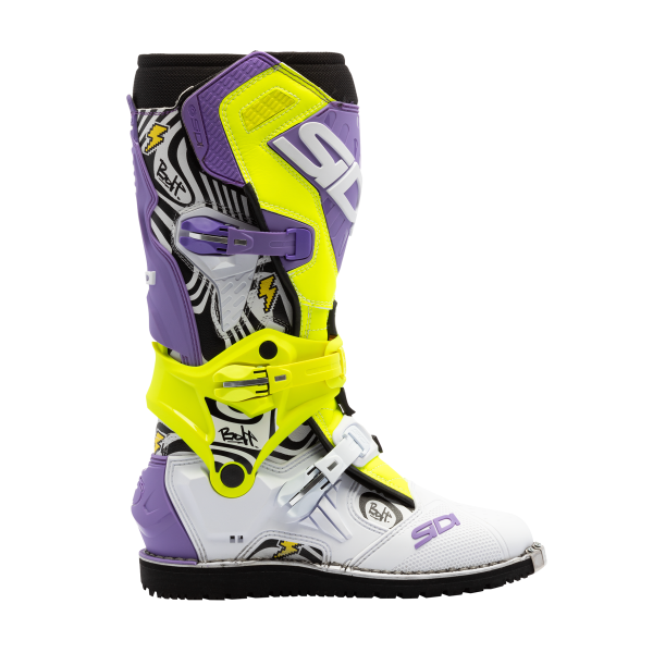 A trial-inspired rubber sole, stitched directly to the upper, offers exceptional grip on footpegs and on the ground—essential for steep climbs, rock sections, and constant transitions. Every detail was refined through real-world feedback from Billy Bolt, resulting in a boot that reflects his demanding style and Sidi’s engineering expertise.