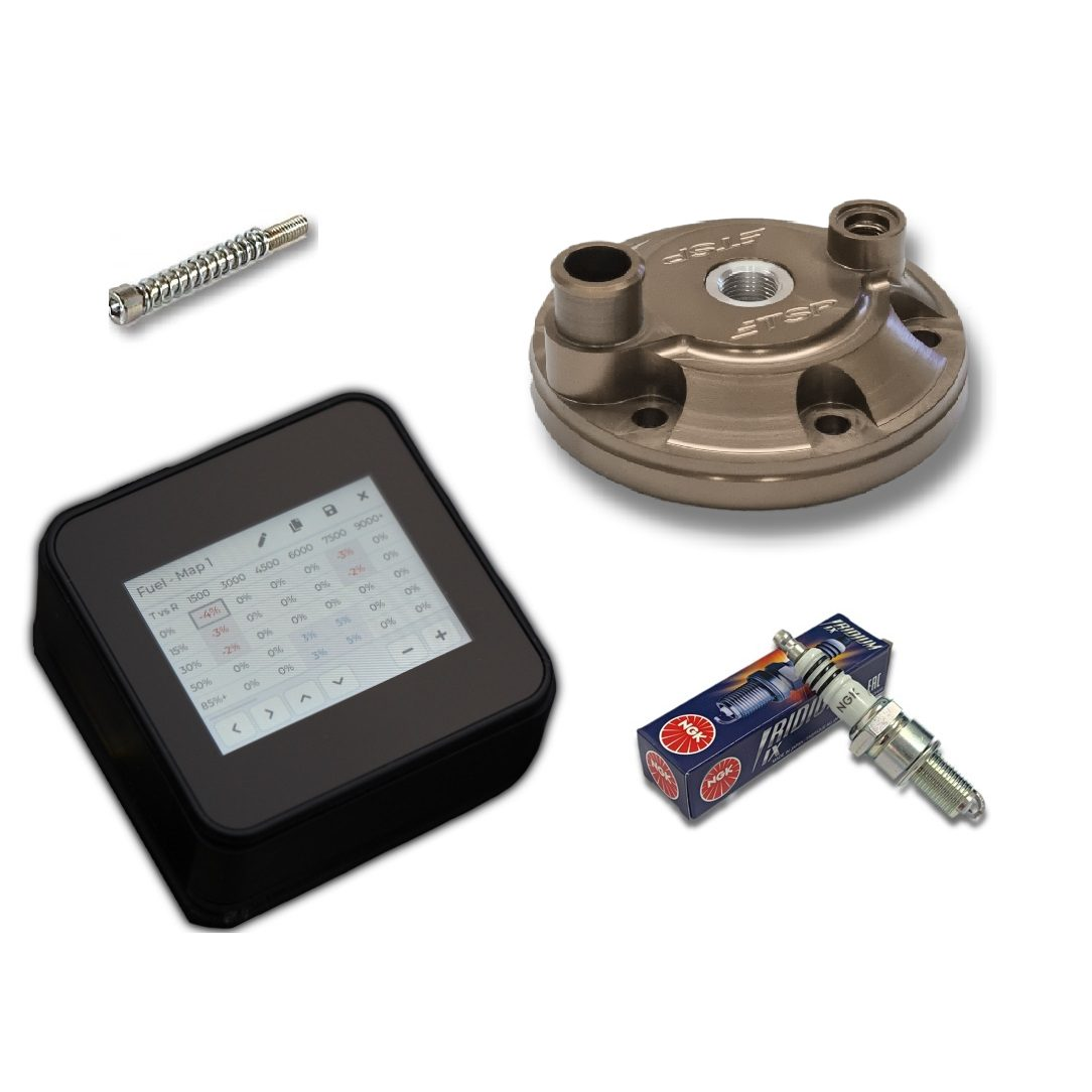 The Two Stroke Performance ERM Power Kits for KTM/HQV/GG 125/150 will transform the power delivery on your bike with the included TSP ERM (ECU Reflash Module), TSP Cylinder Head, NGK Iridium Spark Plug, and TSP Idle Bolt (Idle Bolt included with TPI models only).