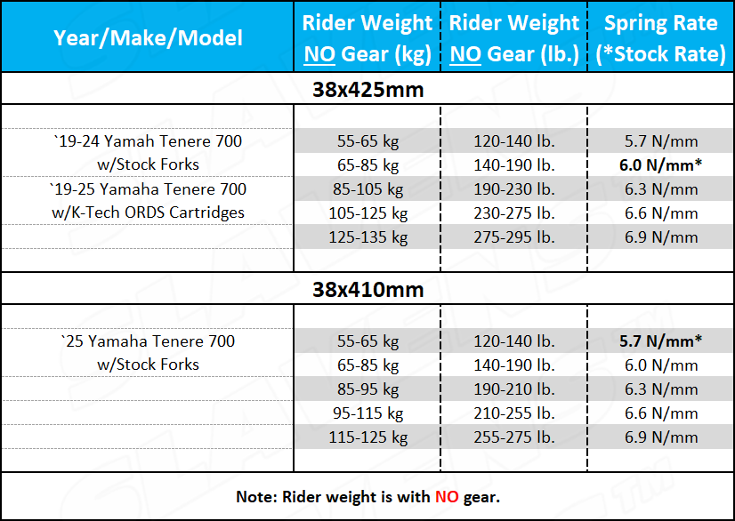 Fits: See spring rate chart above
