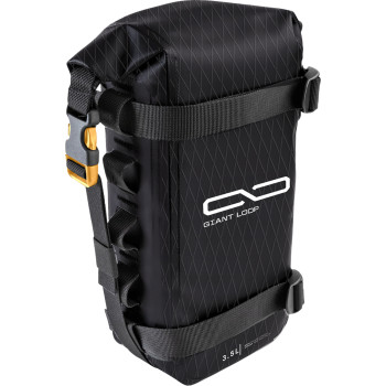 With 3.5-liters of packable volume, the super-rugged, universal roll-top Giant Loop Possibles Pouch provides enough capacity to carry a set of tire irons, spare tube, compressor, tools, and other small offroad essentials. The bag also allows one to add external pockets to Giant Loop’s MoJavi Saddlebag (top center), Coyote Saddlebag, Great Basin Saddlebag, and MotoTrekk Panniers.