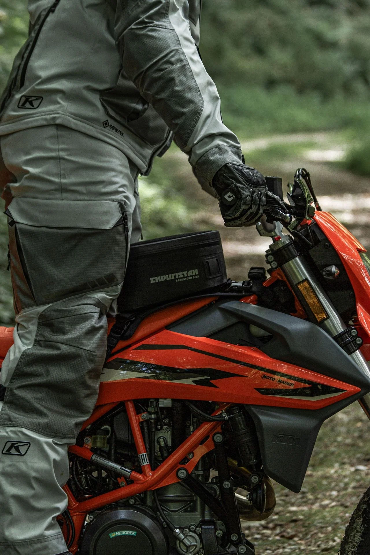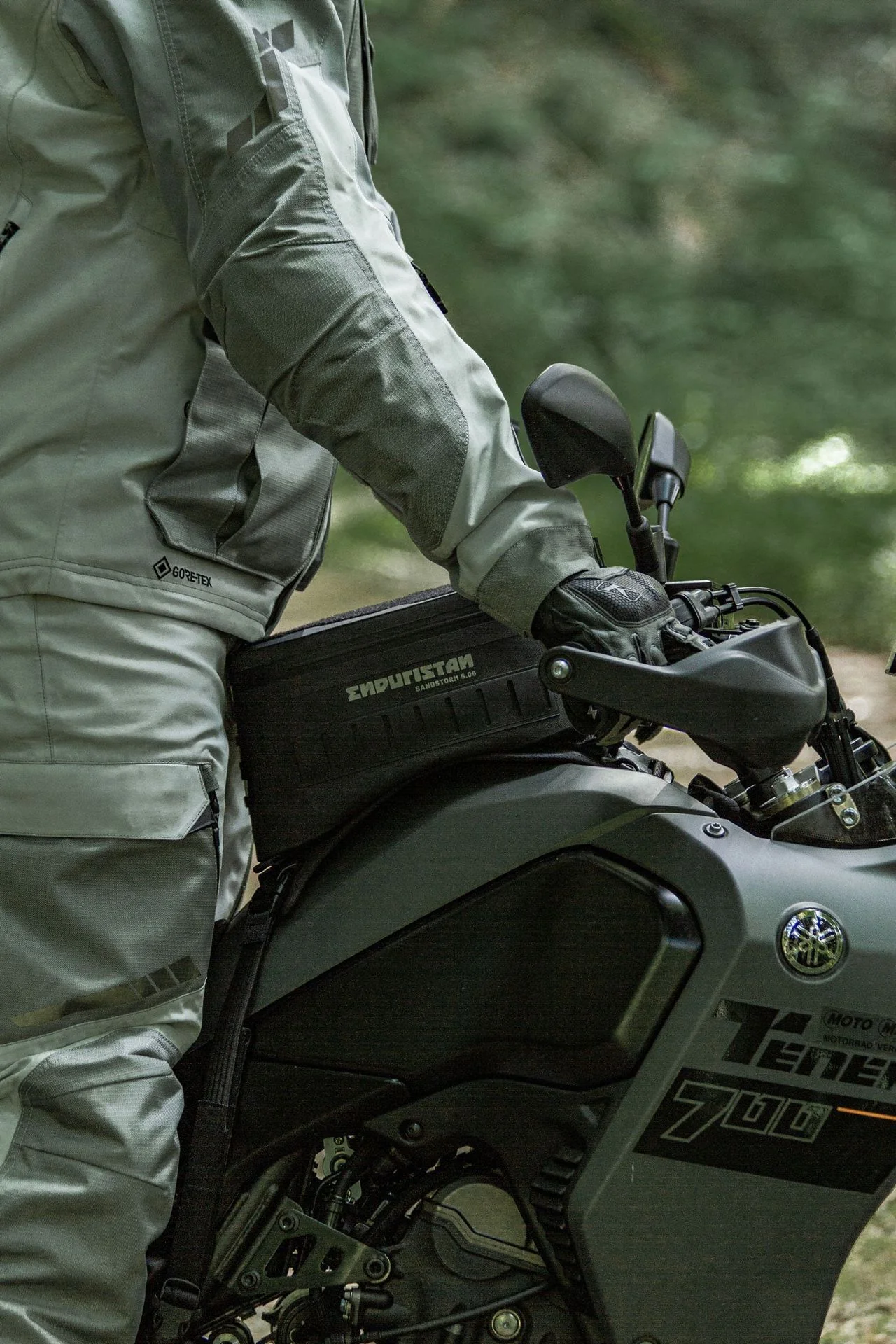 Waterproof, dustproof, mudproof, and snowproof – these features are standard for Enduristan tank bags. The lid opens to the side, allowing one-handed operation and easier access to the contents and the organizer in the lid. The soft bottom protects your motorcycle from scratches and is designed to conform to the shape of the tank, ensuring a precise fit.