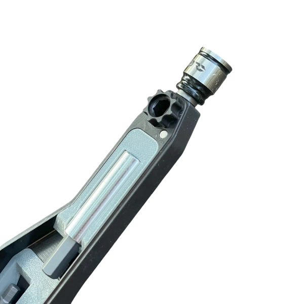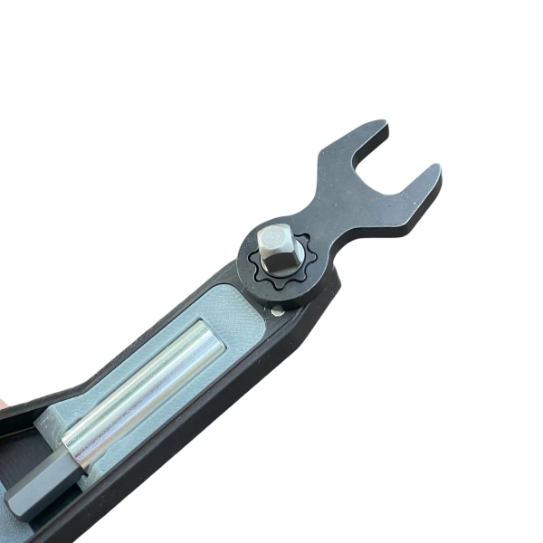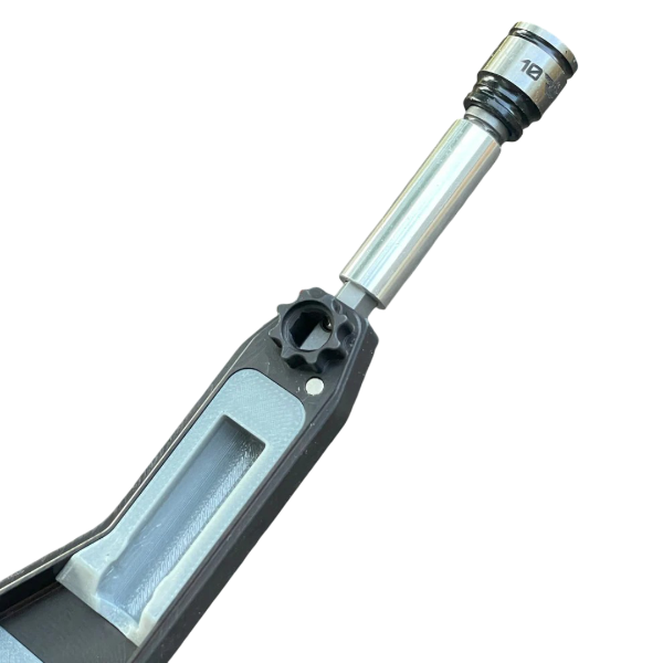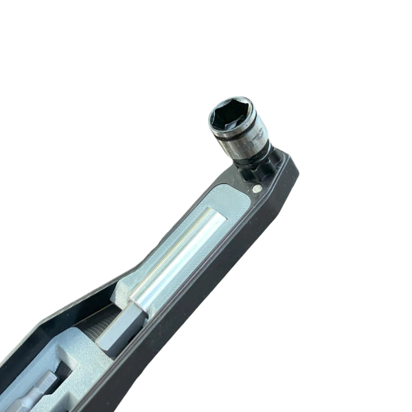 - High torque – custom compact interface designed for axle nuts & big fasteners. Used for open end wrenches and future expandable tool heads sold separately.