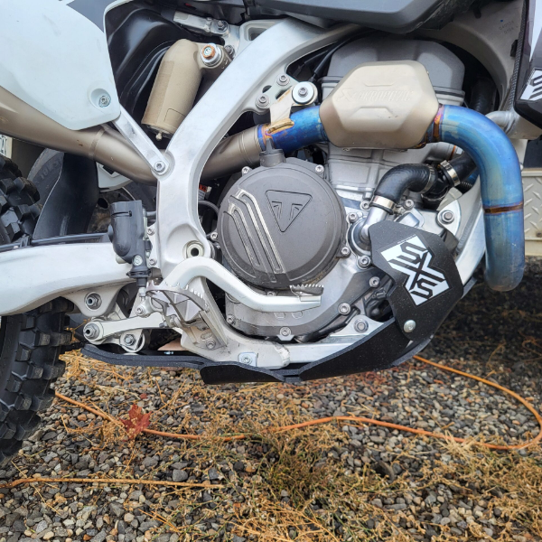 SXSlideplates Full Skid Plates for Triumph slide over any obstacle while protecting your bike. Prevent damage to the engine case, frame, water pump, ignition, shock clevis and the entire suspension linkage. The 1/4″ thick, UHMW polyethylene skid plate form fits to your bike and is self lubricating to carelessly slides over logs, rocks and other debris. 10 times denser than HDPE, this skid plate will last for years. Destroy the competition – not your linkage with SXSlideplates.